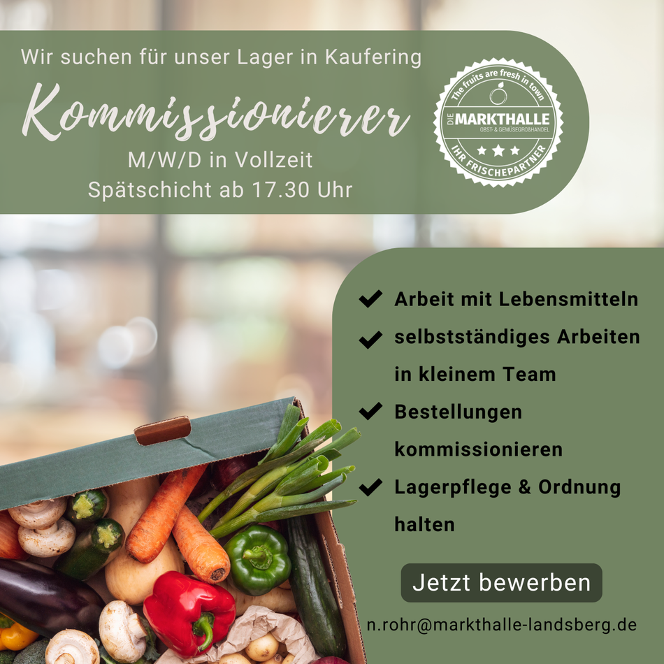 Dann senden Sie uns doch eine Bewerbung an n.rohr@markthalle-landsberg.de zu!